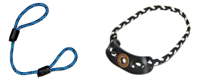 Ce petit cordon permet d'attacher l'arc à la main qui tient la poignée, par les doigts (pouce et index) ou au poignet.