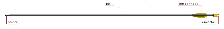 A l'origine en bois, les flèches sont aujourd'hui en aluminium pour le tir en salle et en carbone ou en alliage aluminium-carbone pour le tir en extérieur.