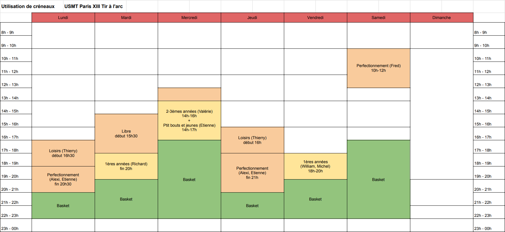 La salle étant utilisée par d'autres sections, elle est accessible suivant certains créneaux horaires. De fait, nous n'y sommes pas prioritaires.